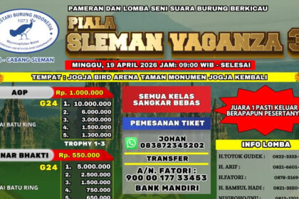 Kontesburung – Dua minggu lagi tepatnya tanggal 19 April 2026 Pelestarian Burung Indonesia (PBI) Sleman kembali akan menggelar Pameran dan Lomba Seni Suara Burung Berkicau, cukup bergengsi khusu...